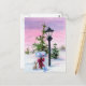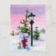 De una pintura al óleo original del aceo de Brenda Thour de un pequeño conejito que se sienta por un buzón con un arco rojo y una luz de la yarda con un paisaje nevoso rosado y blanco. Copyright de Brenda Thour 2008.