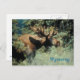 Postal del alce del toro Wyoming. Moose toro saliendo de los árboles.