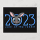 2023 es el año del conejo — ¡el conejo de agua negra! Celebra con este diseño que presenta "2023" y un lindo conejo personalizado en el 0 y las palabras "año del conejo". En la parte trasera de la postal hay un conejo, una bolsa roja y monedas de oro.