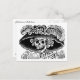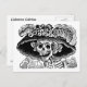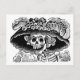 Esta postal de Calavera Catrina hace una tarjeta maravillosamente macabra para cualquier persona en los esqueletos, mori del momento o ilustraciones del calavera. El esqueleto de la señora mostrado aquí está llevando un gorra emplumado con volantes de las señoras de la alta sociedad. Éste es trabajo del vintage de Jose Guadalupe Posada y se llama Calavera Catrina (esqueleto apuesto). Fue publicado originalmente como costado hacia 1910. Este calavera más de moda es una de las obras de arte más famosas de Jose Guadalupe Posada que representan a los mexicanos de la clase obrera de su tiempo.