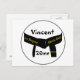 Personalizar de la tarjeta postal del cinturón negro de primer grado de artes marciales con tu nombre personal, nombre de equipo, arte marcial específico o saludo. Esta tarjeta personalizado presenta una fotografía digitalmente realzada de un cinturón negro de artes marciales con una barra o banda dorada.