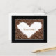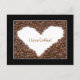 Esta postal presenta una forma de corazón blanco creada con granos de café. La forma central del corazón es perfecta para personalizar el texto, para un mensaje romántico, o para promocionar una cafetería o negocio de café. La imagen del grano de café está rodeada por un borde negro que crea una postal elegante.