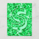 Postcard con un diseño moderno con estrellas diseminadas sobre un estilizado fondo de patrón "secuin look" y un signo de dólar '$' en tonos verdes. Se puede usar como fondo para tu propio texto, imágenes e ideas. Tenga en cuenta que se trata de una imagen de arte digital impresa, que no brilla ni contiene purpurinas o secuencias reales.
