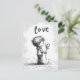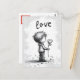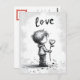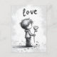 Envíe sus más sentidos deseos con nuestra encantadora postal El día de San Valentín. Este ilustracion en blanco y negro muestra a un adorable chico sosteniendo una flor con la palabra 'Amor' arriba. ¡Una expresión atemporal de afecto! Minimalismo.