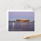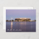 Postal con una foto nocturna del Estadio Perth con una luna emergente en el río Swan en el oeste de Australia.