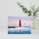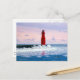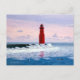 De una pintura acrílica de Brenda Thour, del faro Algoma Pierhead en Wisconsin, en el lago Michigan, con una hermosa puesta de sol rosa y violeta. Derechos de autor de Brenda Thour 2003.