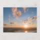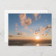Dramática imagen aérea del amanecer tomada en la costa este de Florida en una postal! La luz del sol se refleja en nubes nubladas y reflexiona sobre el agua de abajo con un fondo azul del cielo.