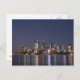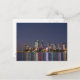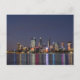 Postal que ofrece una foto del horizonte de la ciudad de Perth en la noche, con reflexiones coloridas en el río del cisne, Australia occidental.