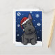 ¡Envíe las postales del navidad del escocés a todos sus amigos animal-cariñosos este año! Un dibujo animado lindo de Terrier del escocés del negro del kawaii se sienta sobre la nieve recientemente caida que lleva un casquillo de Santa, mientras que los copos de nieve derivan suavemente abajo todo alrededor de él.