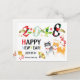Los ilustraciones de perro están basados en el perro japonés "Shiba". El 2018 está decorado con motivos japoneses, mamáes y flores de ciruela con pinos estilizados y flores al fondo. Este es un ilustracion digital.