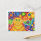 ¡Bebé maravilloso! Un gato rayado amarillo y anaranjado con barbas que remolinaban y un arco iris psicodélico modeló el fondo. Postcaerd con un diseño adaptable del amarillo, del naranja, del rojo, del azul, del verde, del rosa, del púrpura, y blanco para que usted personalice con su propio texto, imágenes e ideas. Un dibujo de lápiz coloreado digital aumentado de la original de Jess Perry.