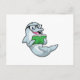 Postal Delfín como friki con gafas y libro