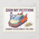 Aviso falso de un coche retro: "¡Rótulo mi petición! ¡Exija el regreso de las aletas de cola! ¡Llama a tu congresista!" Texto con imagen de un auto de estilo actual con aletas de cola, y modelo futurista. Camisetas, franja de regalo de novedad.