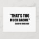 Nerds, geeks y fanáticos de comer chiste de carne salado cocinado con la frase "Eso es demasiado tocino." dijo nadie. Echa un vistazo a este divertido diseño personalizado en té, camisetas, tazas, regalos y prendas de vestir.