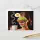 Una mujer sostiene una taza de café y un desayuno de aguacate y tostadas de tomate y un flote de huevo frito en el arte surrealista del aire