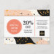 Postal de descuento de cupón de Peach Gold Black Terrazzo