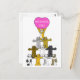 Diferentes personalizados de colores se paran en los hombros con el gato de arriba sosteniendo un cartel rosado que dice 'Te deseo'.