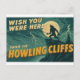 Envíen escalofríos por la columna vertebral con esta espeluznante postal de estilo retro que presenta a un lobo solitario gritando sobre un acantilado accidentado, siluteado contra una raya de rayo y un cielo tormentoso. Perfecto para los fanáticos del horror, los amantes de Halloween, o aquellos a los que les gustan sus saludos con un adulto. Diseñada al estilo nostálgico de los afiches de viaje de mediados del siglo pasado, esta tarjeta lista para imprimir ofrece grandes vibraciones embrujadas con un guiño.