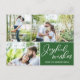 Traiga sus alegres deseos a sus amigos y familia esta temporada de vacaciones con esta hermosa y moderna tarjeta de Navidades fotográficos. Guión blanco cursivo simple sobre un fondo verde festivo junto a tu collage de fotos de 3 familias. Una moda, tarjeta de vacaciones moderna con tres cuadros.
