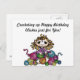 En esta postal se incluye una imagen de una chica sentada en bolas de hilo con gancho de crochet en la mano, con el mensaje "Crocheting up Happy Birthday Wishes just for You" (Recolectando deseos de cumpleaños felices solo por ti). ¡Un gran saludo de cumpleaños para enviarle a tu crocheter favorito!