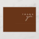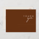 Esta tarjeta postal de agradecimiento de boda Simple Desert | Dark Cinnamon es exactamente lo que estás buscando para completar tu boda boho rústica moderna. Perfecta para un ambiente western minimalista vintage o un ambiente bohemio de otoño retro. La tipografía minimalista en blanco natural realmente resalta con este colorido fondo otoñal. Puedes elegir dejarla tal como está o personalizarla con tu propia obra de arte o fotos. Desplázate por la colección para seleccionar otros artículos que hagan que tu boda de otoño cante con autenticidad.