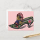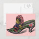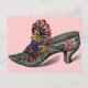 Dibujo en blanco y negro de un zapato victoriano con cuentas de colores