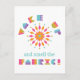 La graciosa cita de esta colorida postal dice, "Despierta y huele la tela" en hermosas letras originales de tejido de color arcoiris. Puede cambiar la palabra "olfato" por "comprar" si lo prefiere. © The Quilt Press