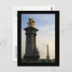 Iluminada por el sol, una estatua alada dorada en la cima y una columna ornamental. Vista de la Torre Eiffel desde el puente Pont Alexandre III en París Francia. Fotografía de Minerva Bloom. PERSONALIZAR IT: ¡agrega tu propio mensaje! El Pont Alexandre III es un puente arco que atraviesa el Sena, que une el barrio de los Campos Elíseos con el barrio de los Inválidos y la Torre Eiffel, considerado el puente más ornamentado y extravagante de París. Entre 1896 y 1900 se construyó el puente con sus exuberantes lámparas de estilo Art Nouveau, cherubs, ninfas y caballos alados. Su nombre proviene del Zar Alejandro III, que había concluido la alianza franco-rusa en 1892. Su hijo Nicolás II sentó las bases en octubre de 1896. El estilo del puente refleja el del Gran Palacio, al que se accede a través de la orilla derecha.