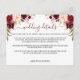 Postal Detalles del Boda floral de Borgoña Insertar tarje