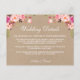 Postal Detalles del Boda floral rosado Kraft Insertar tar