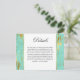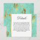 Una tarjeta de detalles boda de estilo contemporáneo para proporcionar a sus invitados bodas toda la información que necesitarán para el día de su boda. Dales instrucciones al boda, información del hotel, su sitio web boda, eventos especiales o cualquier otra información pertinente que necesitarán para el gran día. Esta tarjeta de detalles tiene un patrón de mármol abstracto de menta y oro con una falsa veta de oro de Relieve metalizado. Edite el texto de ejemplo con sus especificaciones. Puede mover el texto para volver a centrarlo después de realizar los cambios.