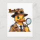 Envíe saludos inteligentes con esta original postal que incluye a un detective de patos con un abrigo de trinchera marrón. Con su diseño caprichoso y artístico, es perfecto para los aficionados a los misterios o para cualquiera que disfrute de una papelería única.
