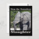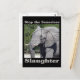 Un cierre de un elefante africano en la cruz con las palabras "Detengan la matanza sin sentido que lo rodea".