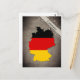 Postkarte mit einem Umriss von Deutschland, gefärbt en den Farben der Nationalflagge.