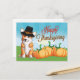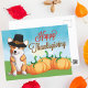 Esta hermosa postal de Corgi Thanksending presenta a un lindo perro de Pembroke Welsh Corgi llevando un gracioso gorra de peregrinos junto a un trío de calabazas en un campo de otoño. Personalizar esta carta de agradecimiento con tu propio saludo de otoño en la parte trasera.