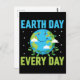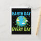 Envíe esta divertida postal para crear conciencia sobre la protección ambiental y honrar a nuestro planeta Tierra en el Día de la Tierra y todos los días. Esta bonita postal presenta un encantador ilustracion personalizado de nuestro planeta con una expresión feliz y la frase "Día de la Tierra todos los días" en un tipo de letra azul y verde.