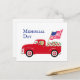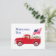 Tarjeta postal del Día de los Caídos Camioneta Roja para fanáticos de Labrador. Diseño de caricatura de Labrador Amarillo y Camioneta Roja para el Día de los Caídos. Creado por Naomi Ochiai.