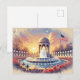 Aquí hay una elegante tarjeta postal del Día de los Caídos en estilo acuarela, con una gran fuente conmemorativa en un entorno sereno de parque al atardecer con amapolas rojas floreciendo, banderas estadounidenses y palomas volando. 🇺🇸✨ Los trazos fluidos de pincel de acuarela y los tonos pastel suaves crean una atmósfera refinada y tranquila.