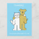 Un gato y un perro personalizado con los brazos alrededor unos de otros, con un fondo turquesa. Las palabras 'Gracias por estar siempre ahí por mí' acompañan la imagen.