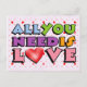 A cualquiera le encantaría recibir esta linda y colorida retro ¡Todo lo que necesitas es una postal de amor con corazones para el Día de San Valentín o cualquier día!