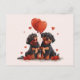 Ilustración adorable de perros Rottweiler vestidos de rojo y rosa para el día de San Valentín. Perfecto para los amantes de las mascotas durante la temporada del día de San Valentín.