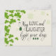 La postal del Día de San Patricio representa un diseño de rocas de champú verdes. Presenta una Bendición irlandesa, "Que el amor y las risas iluminen sus días". El saludo, la oración pueden ser personalizados o borrados para un mensaje escrito a mano y la tarjeta usada para muchas ocasiones.