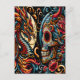 Un ilustracion vibrante de un dragón y un cráneo de azúcar con detalles intrincados, celebrando el Día de los Muertos.
