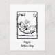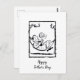 Una imagen retro en blanco y negro de un padre o un hombre relajándose en una hamaca con una bebida fresca y un ventilador. Saludo: Feliz Día del Padre. Imagen de un Libro de Impresoras Vintage de los años 1940 (sin derechos de autor) con un marco personalizado.