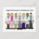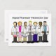 Un grupo de técnicos de farmacia del pf con abrigos blancos, parados en una fila. Las palabras 'Feliz Día del Técnico de Farmacia' acompañan la imagen.