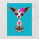 Este adorable diseño cuenta con un pequeño Chihuahua decorado con motivos del Día de los Muertos. En la cabeza del perro aparece un solo rosa mientras los pedales de flores rodean los ojos. La diminuta cara del cachorro está decorada con remolinos y patrones de puntos en la tradición del Día de los Cajones de azúcar Muertos. La cabeza de gran tamaño y el cuerpo pequeño, junto con los detalles de la piel, crean una hermosa combinación de un aspecto personalizado y realista. El fondo puede cambiarse a cualquier color que desee haciendo clic en el botón Personalizar. Este singular diseño de cráneo de azúcar para bebés es una manera adorable de celebrar el Día de los Muertos.