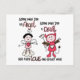 ¿Algunos días un ángel, algunos días un diablo? Si eso suena familiar usted amará este diseño lindo del ángel y del diablo en las camisetas del diablo del ángel, las tazas, los bolsos, las tarjetas, los monos, los pegatinas, los llaveros, las almohadas, y otros artículos. ¡Ofrece una figura dibujada mano ángel del palillo con un vestido rosado del corazón que se coloca en una nube y un diablo con un pitchfork!