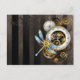Diales antiguos con artes de oro y latón, decorados con libélula mecánica sobre fondo marrón, rayado. Steampunk.