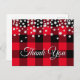 Postal Diamante Brillante Rojo Buffalo Plaid Gracias