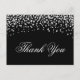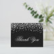 Crea tus propias tarjetas de agradecimiento elegantes para una fiesta de cumpleaños. Diamantes de estrás falsos plateados y blancos brillantes con destellos sobre fondo negro sólido. Todos los efectos brillantes y plateados de este diseño femenino moderno se crean con gráficos digitales. Un diseño creativo para tu celebración celestial de cumpleaños.